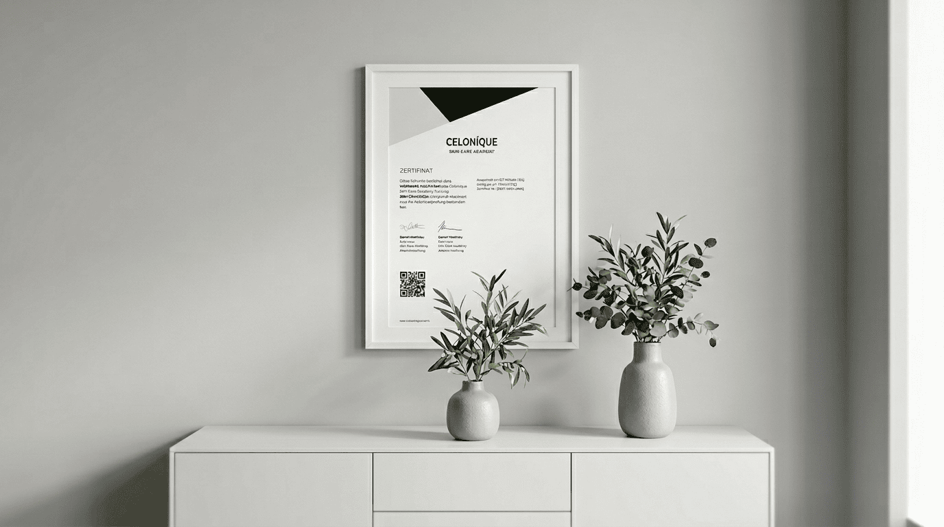 Nach bestandener Abschlussprüfung erhalten Sie Ihr offizielles Celonique Skin Care Academy Certificate. Das Certificate ist 12 Monate gültig und kann durch eine verkürzte Rezertifizierung erneuert werden. So bleiben Sie immer auf dem neuesten Wissensstand.